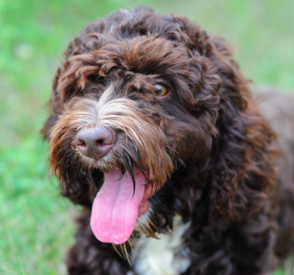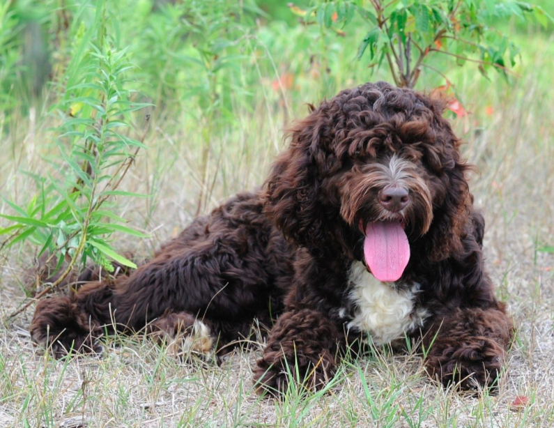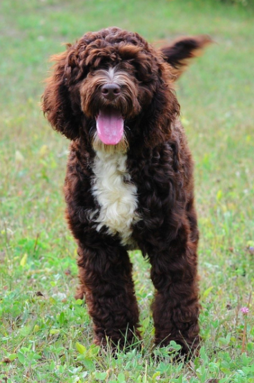 Bones is an Australian Labradoodle (ALD) from Swissridge Kennels. An ALD is a mix between Labrador retriever, cocker spaniel, & poodle. Bones has a soft, non-shedding coat & is a Swissridge Kennels stud. He loves to play with his toys, he’s a superstar when it comes to playing fetch, & he loves playing with other dogs. He is also very affectionate & loves to gives kisses!